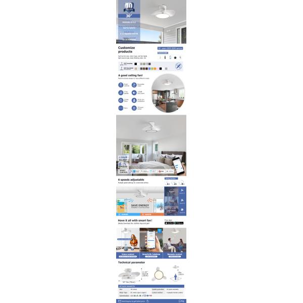 30 inch 110V 230V ABS Blades Ceiling Fan With Light 35W DC Motor Images |